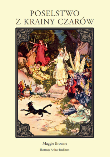 Maggie Browne to pseudonim literacki Margaret Andrewes z domu Hamer urodzonej w 1864 roku. Autorka pochodzi z rodziny wydawców i pisarzy, jej twórczość porównywano do „Alicji w Krainie Czarów” a „Poselstwo” ukazuje się drukiem w odcinkach w 1901 roku. Później nadchodzi czas zapomnienia, mijają lata i oto dziś trafia do rąk małego czytelnika opowieść z nieco innej epoki, lecz z olbrzymim potencjałem i silnym ładunkiem magicznym. Historia rozpoczyna się buntem w Krainie Czarów. Wróżki podjudzone przez Kota w butach występują przeciwko swojej królowej. Dwie z nich wyruszają na ziemię, by przekonać się na własnej skórze czy wróżki jeszcze mają władzę nad ludźmi i czy ich dary są nadal cenne. Bohaterki przyjmują postać staruszek, wprowadzają się do wiejskiej chatki i próbują nawiązać kontakt z dziećmi. Niestety znajomość z małymi mieszkańcami wsi nie zaczyna się dobrze. Staruszki proponują dzieciom swoje dary: czapkę niewidkę, siedmiomilowe buty czy pantofelki Kopciuszka, lecz magiczne przedmioty nie działają, co wywołuje u dzieci gniew. Zamieszanie sięga zenitu, na dodatek dary znikają w niewyjaśnionych okolicznościach, więc dwie wróżki udają się do jaskini, w której mieszka najmądrzejsza czarodziejka. Rada, którą od niej otrzymają oczywiście nie będzie podana wprost. Ostatecznie wróżki zrozumieją, jakie błędy popełniły i spróbują wszystko naprawić, o ile nie przeszkodzi im pewien czarny kot.